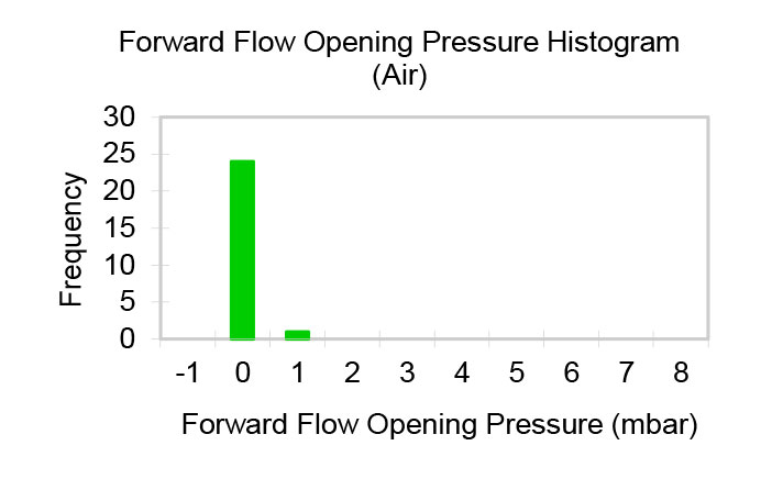 Opening Pressure is the differential pressure required for the valve to allow forward flow that meets the specified flow threshold. As the flow threshold increases, the Opening Pressure will also increase. Conversely, reducing the flow threshold will result in a lower Opening Pressure. Water test data is available upon request.